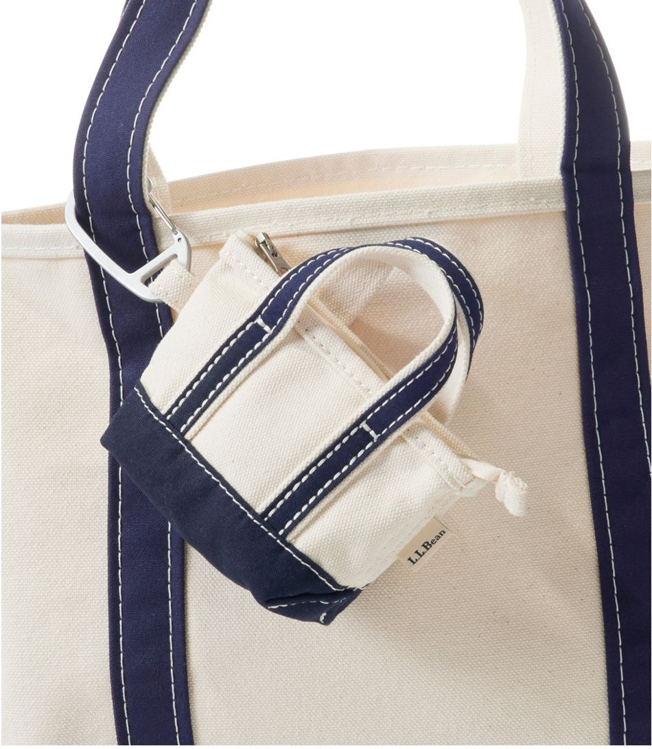 The tiniest (and cutest) tote ever! This mini version of L.L. Bean's. iconic tote zips open to store small items. Carabiner clip makes it easy to attach to bags, totes, belt loops and more.