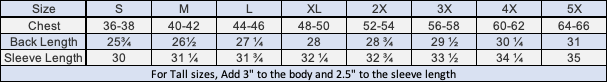 *Chest measurement is roughly double the pit-to-pit measurement