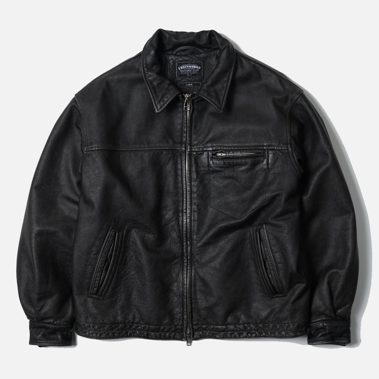 FrizmWorks Destroyed Cowhide Leather Jacket - Washed Black