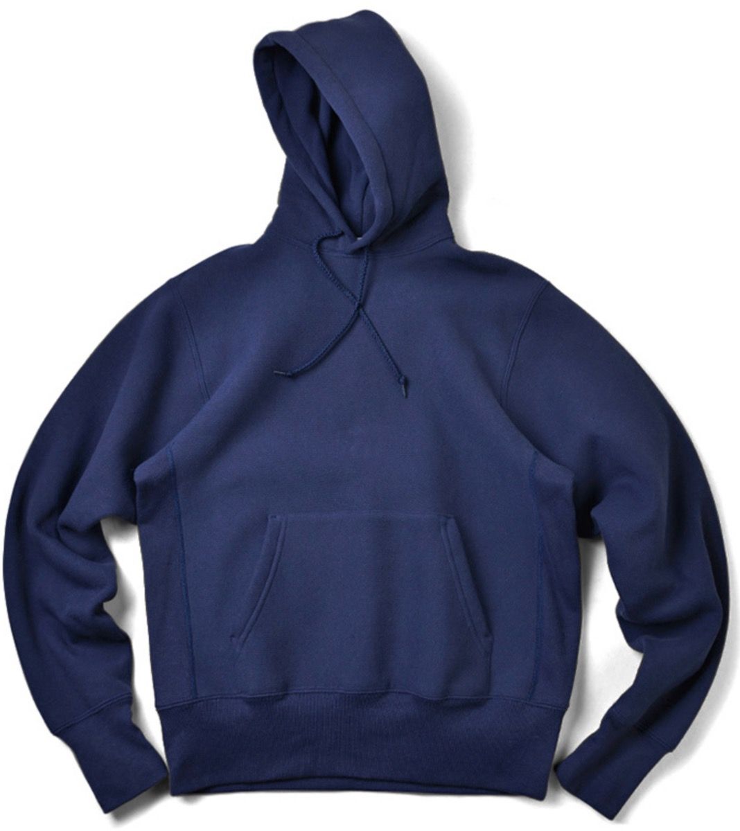 Heavyweight hooded sweatshirt. Drawstring hood with brass eyelets. Set-in sleeves. Muff pockets.