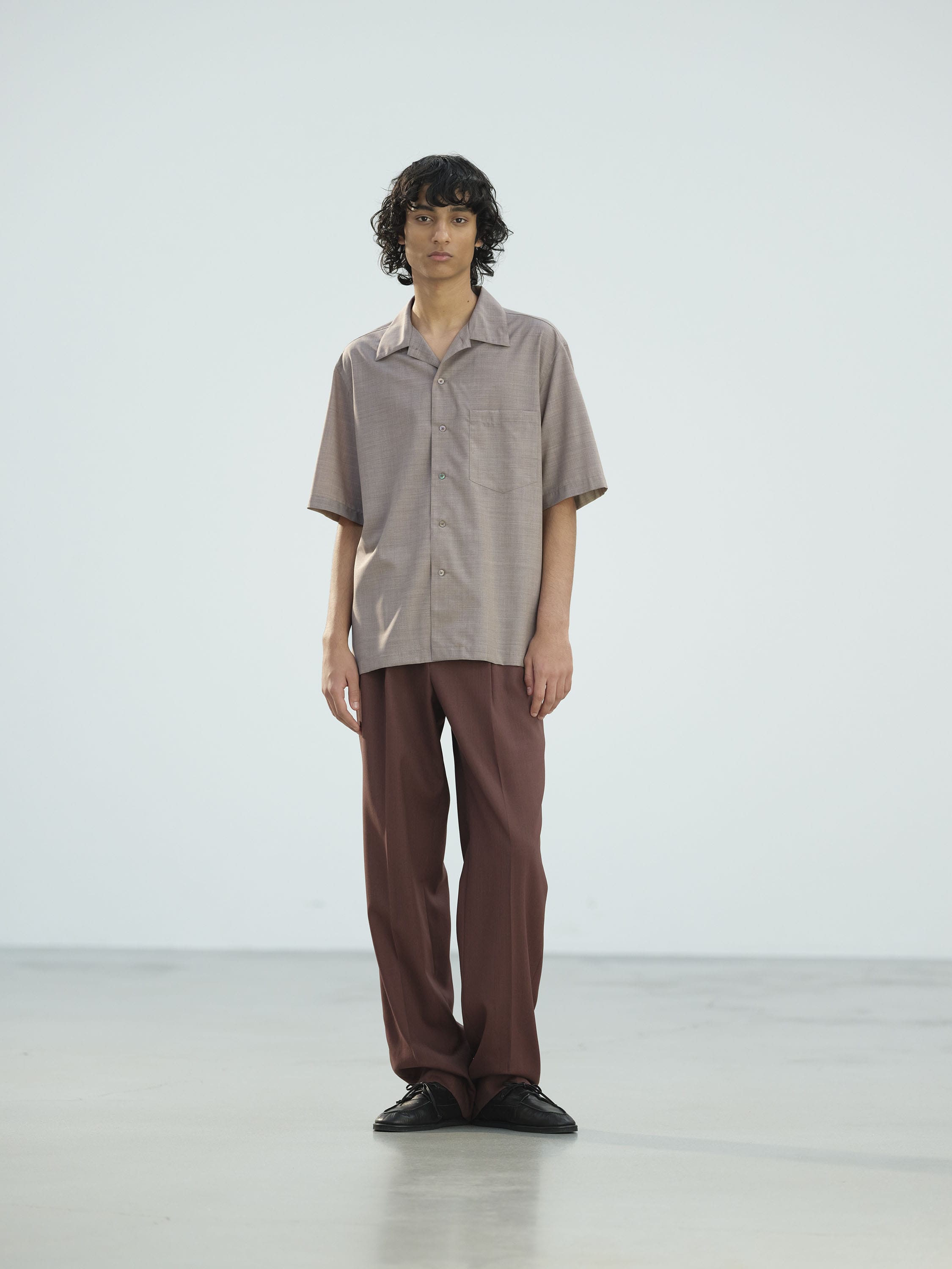 AURALEE Super Fine Tropical Wool Open Collar Half Sleeved Shirt - TOP LIGHT BROWN