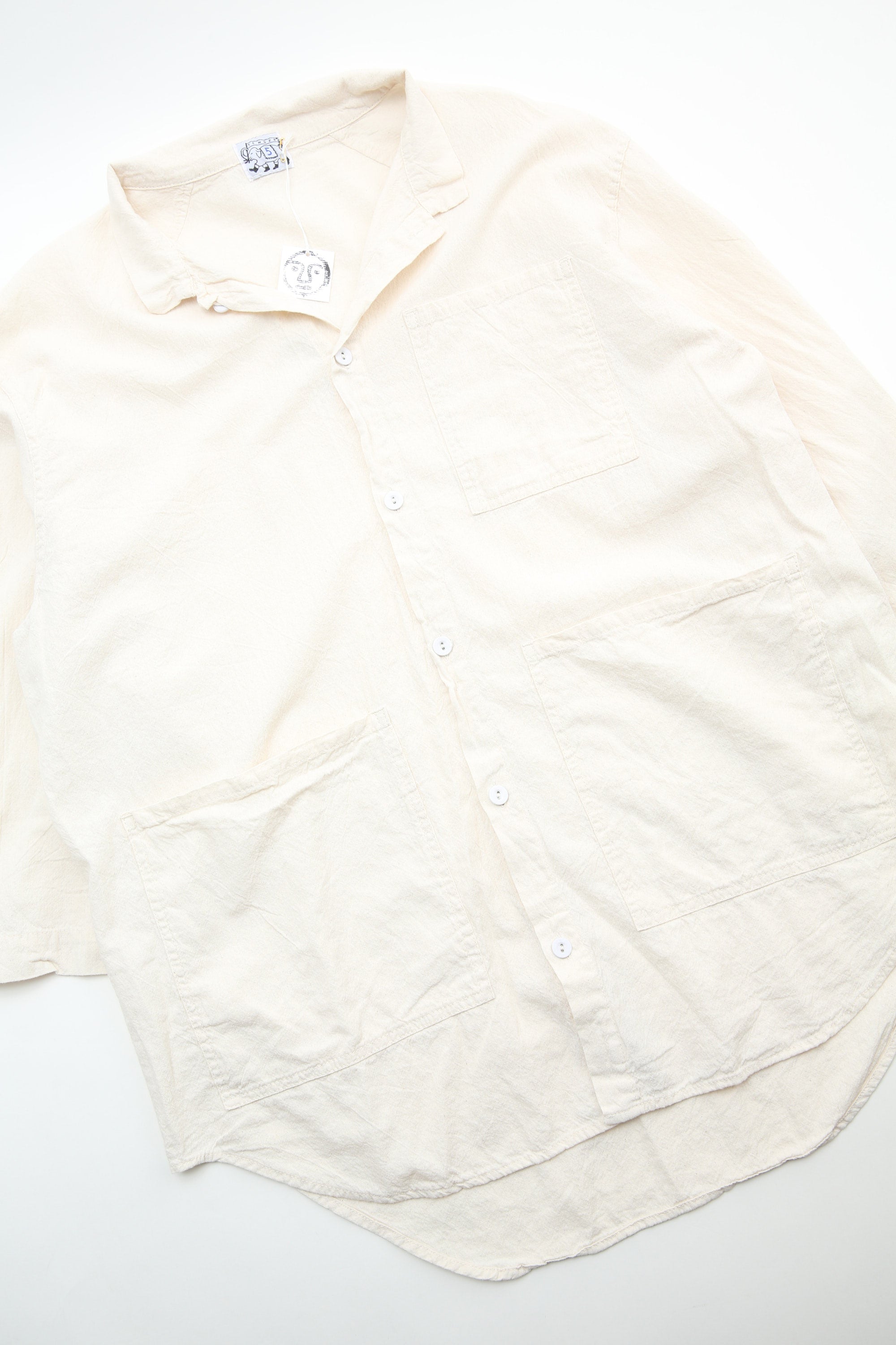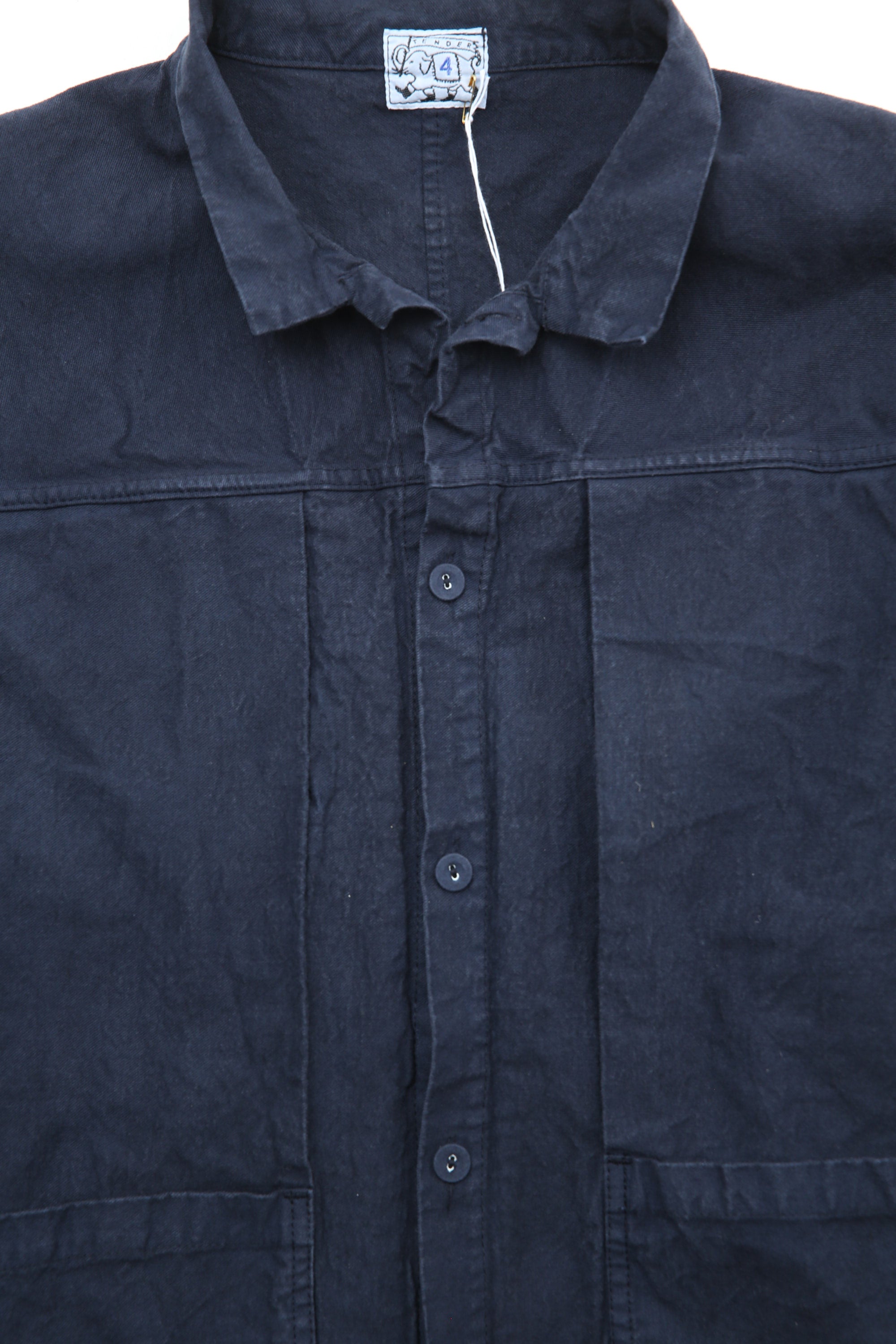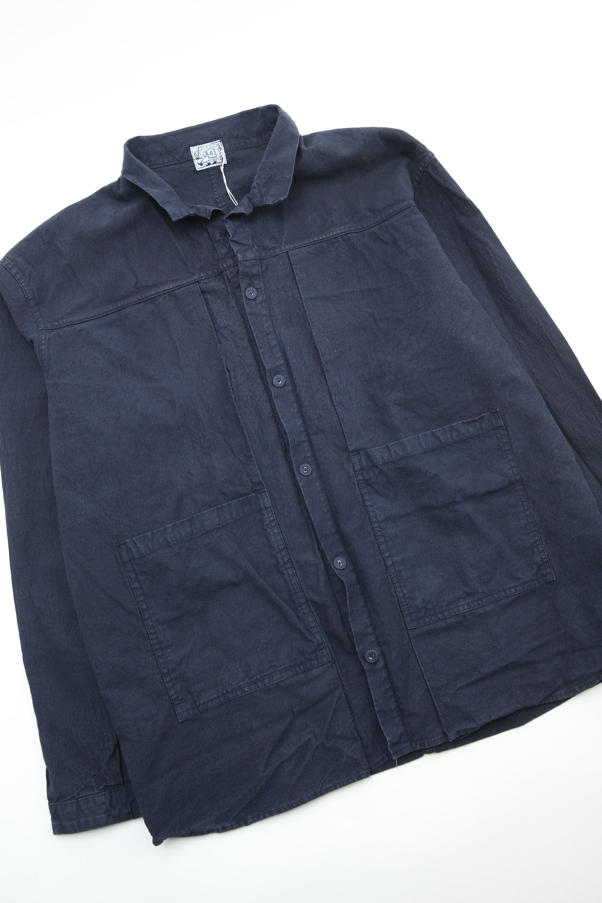 The main collection of shirts, jackets, and trousers is now fully woven, sewn, and dyed in USA, and garments are labeled with a new blue label. Knitwear and denim continue to be produced in England, and is marked with the original red label.