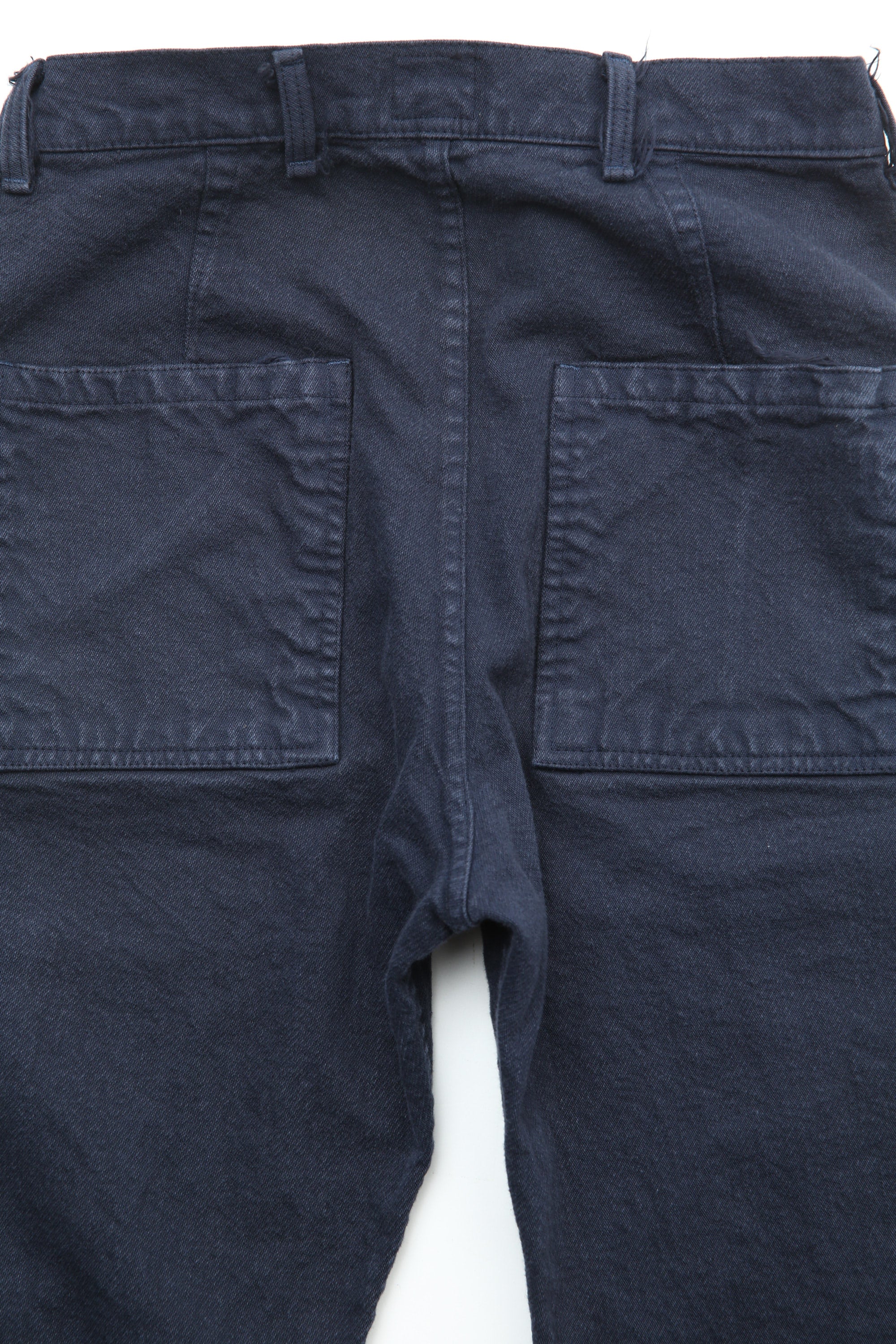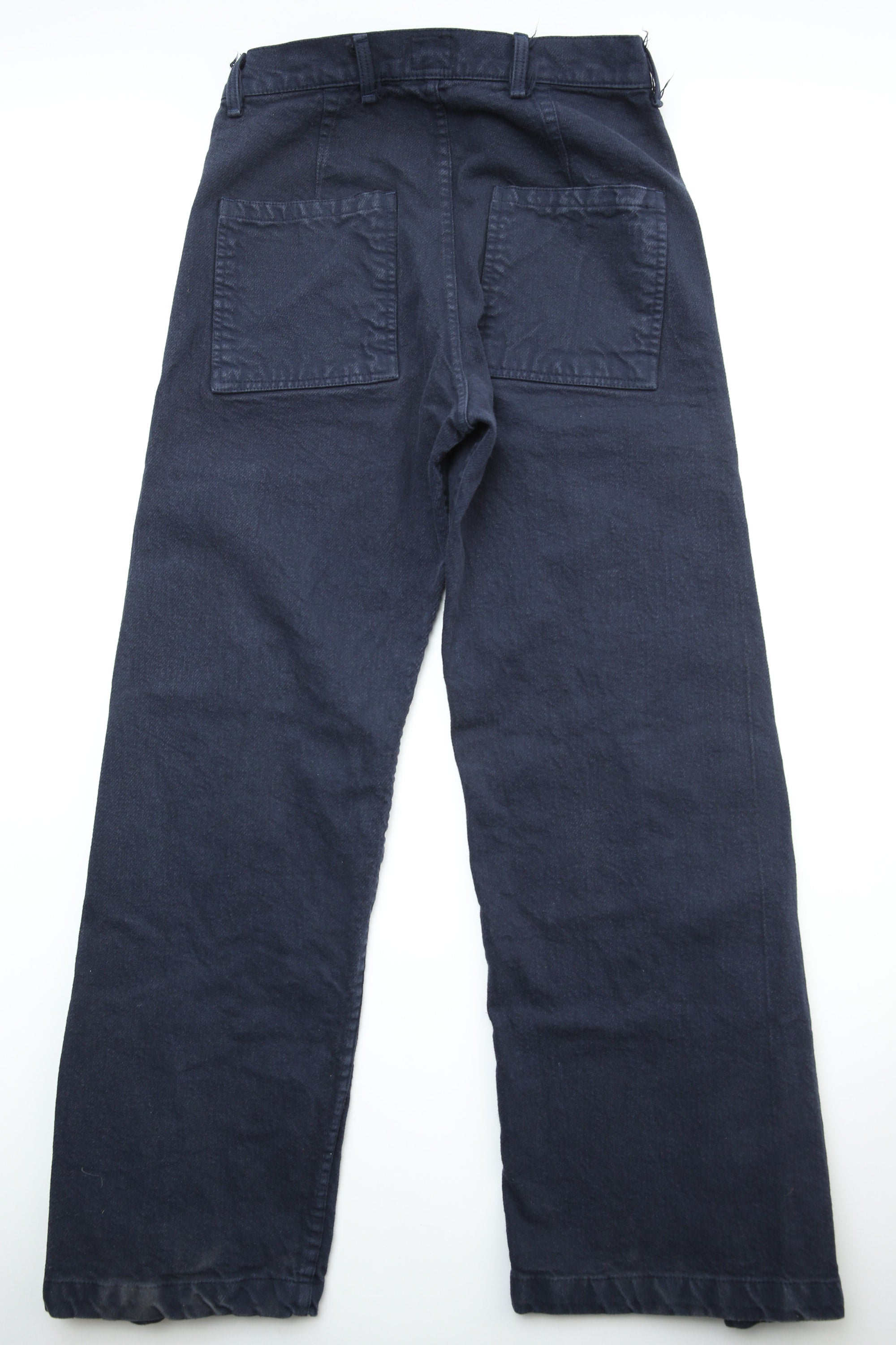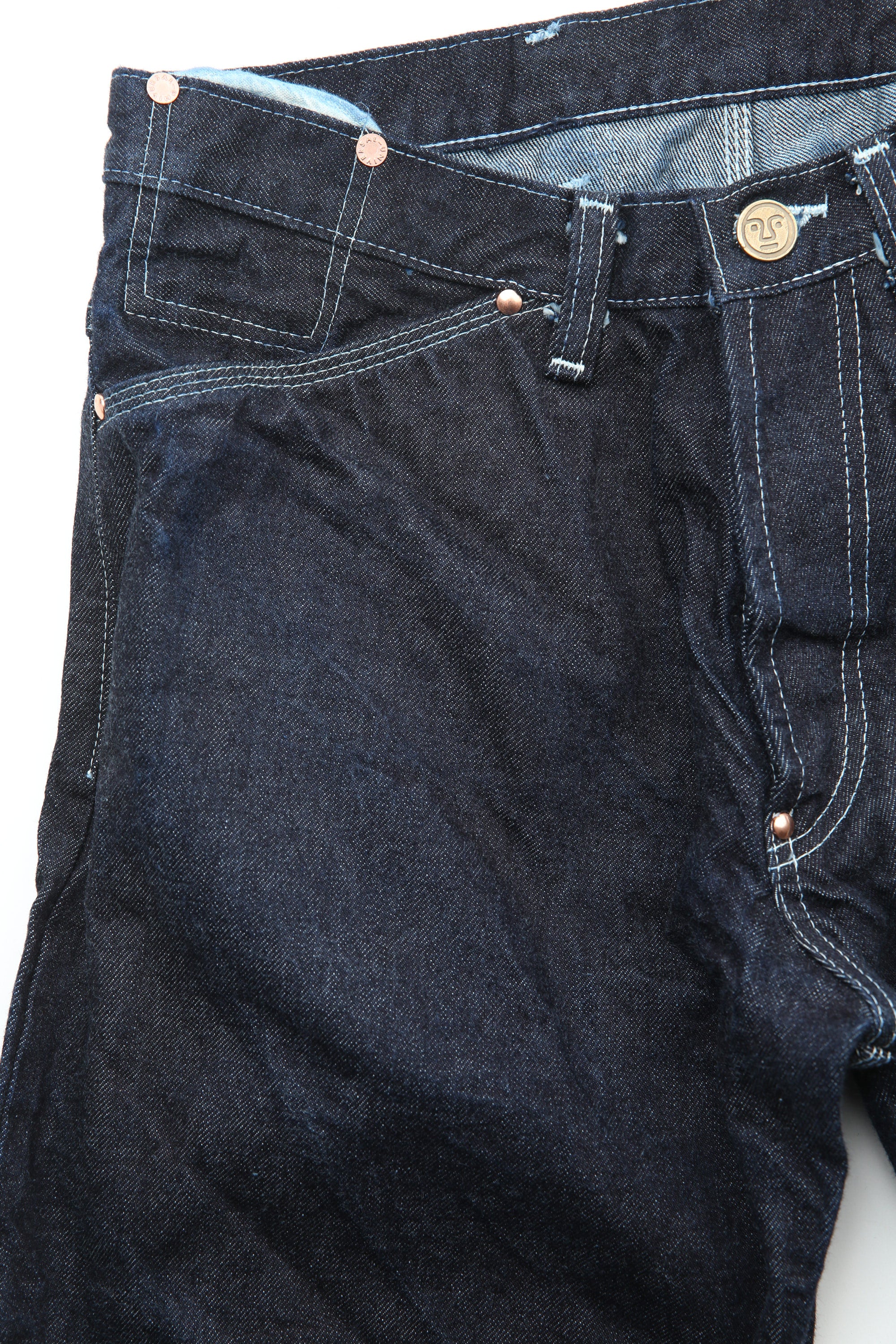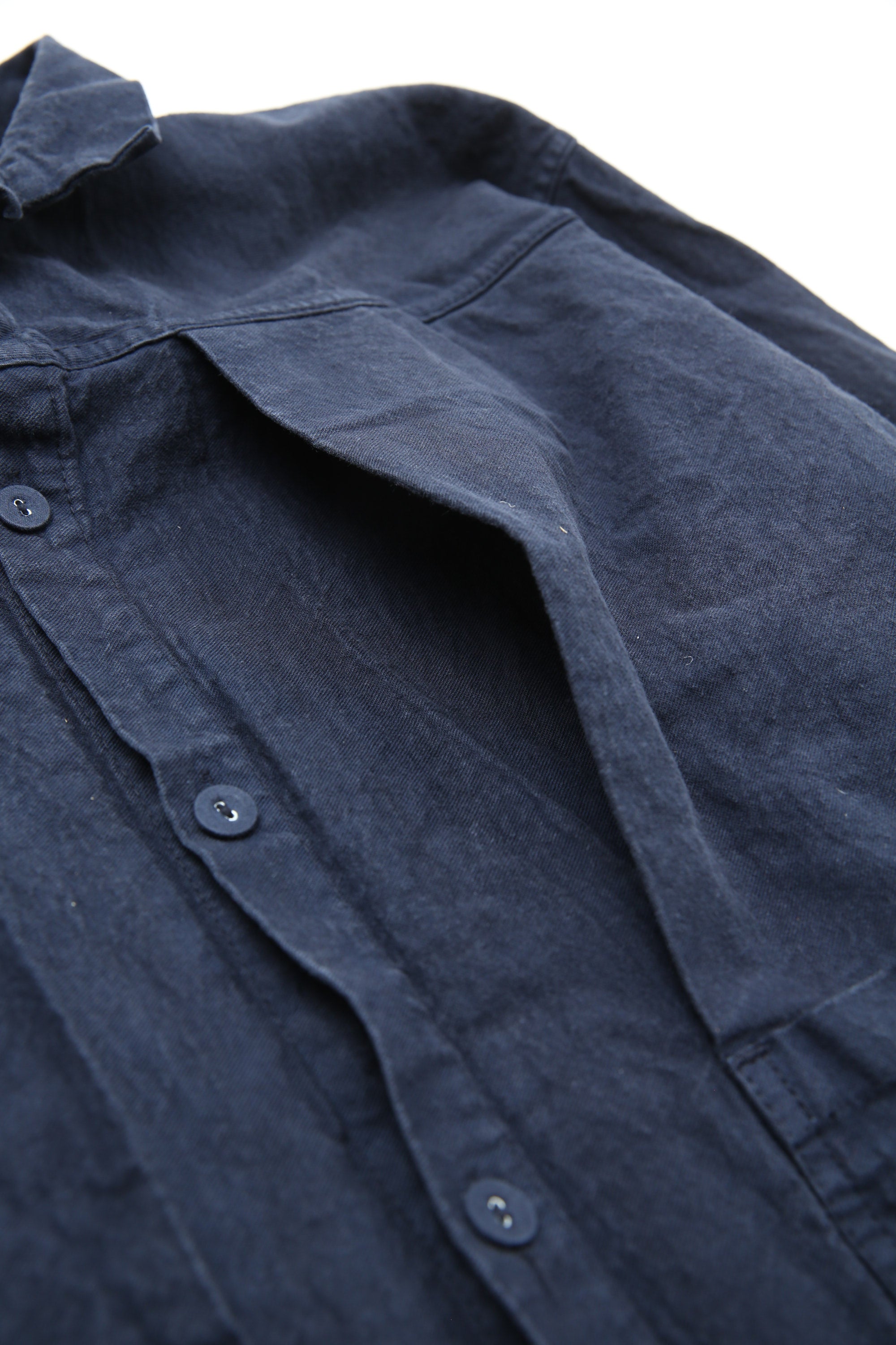 The main collection of shirts, jackets, and trousers is now fully woven, sewn, and dyed in USA, and garments are labeled with a new blue label. Knitwear and denim continue to be produced in England, and is marked with the original red label.