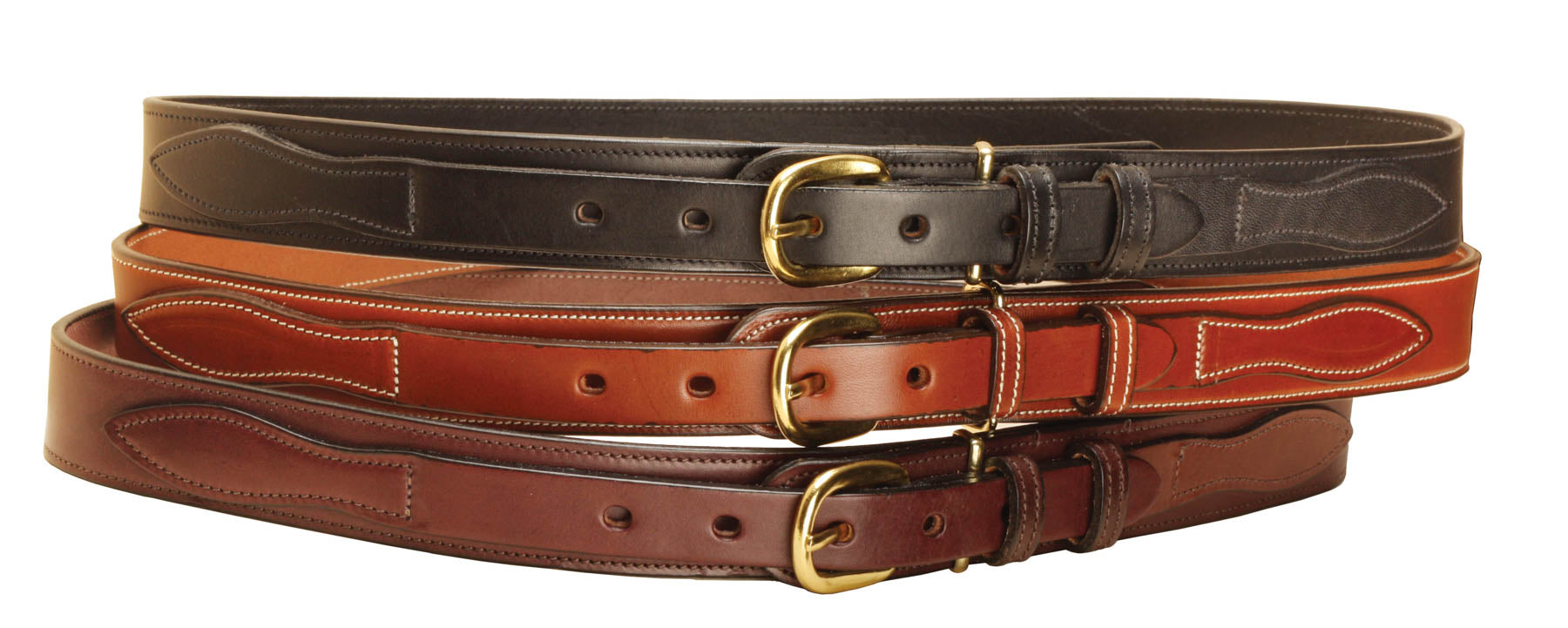 Crafted from heavy-weight English Bridle Leather, this 1 1/4" Tory Leather Ranger Belt in Oakbark is built to last and look better with age. Decorative leather tab overlays highlight the solid brass buckle, which snaps on and off for easy swapping. Made in America from the finest domestic leather, it’s the perfect playful finishing touch for your riding gear or everyday style. Pro tip: order your belt 2" larger than your waist for the best fit!