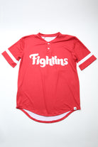 Step up your game day fashion with our FIGHTINS Henley Mesh Jersey! Made in Philly, this breezy yet strong jersey is just right for the season. In a bright red shade, it'll make you stand out in the crowd while its breathable mesh material keeps you feeling cool and comfy. Flaunt your team and city pride with this essential top.