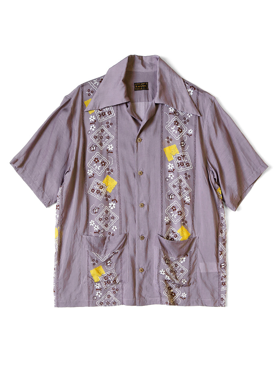 Kapital Silk Rayon PECKISH RAINBOWY WRANGLE Collar Cuba Shirt -Purple