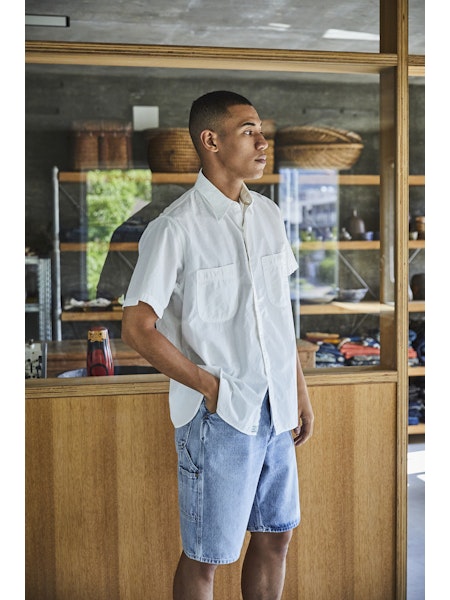 orSlow Short Sleeve Chambray Work Shirt - White