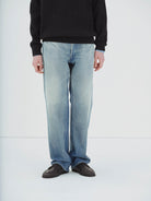 Denim crafted with a focus on achieving a vintage feel, woven slowly over time on a shuttle loom, creating a substantial heavy texture. Expert artisans apply delicate hand-finishing techniques, giving each piece a unique expression. The fabric is characterized by its exquisite fading and rich depth, offering a finish that evokes the worn-in patina of years of use.