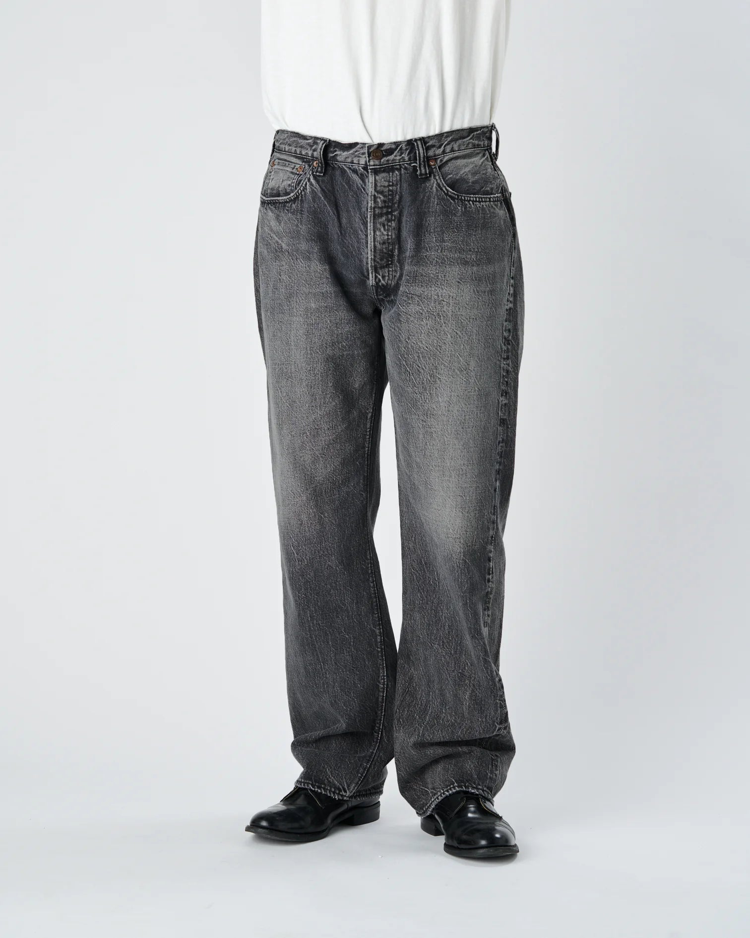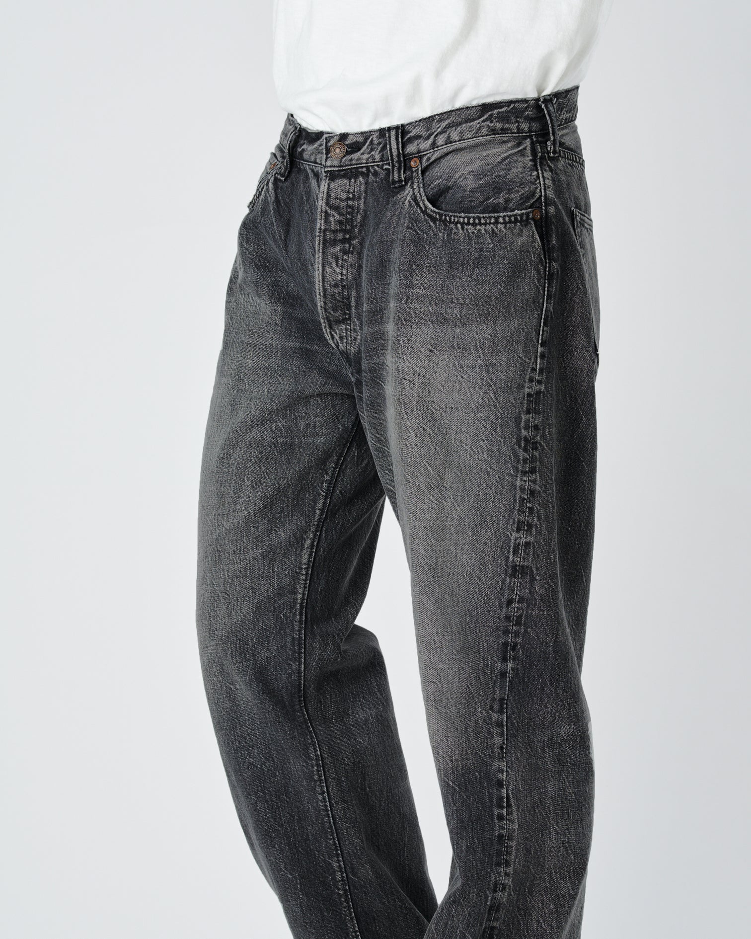 Black jeans, which have become increasingly popular in recent years, are available in the 0105 / 1101 / 1108 silhouettes, which are standard Fullcount products. Compared to indigo dyeing, rope-dyed black jeans change color more slowly over time, but you can still enjoy the gradual vertical fading. The slowly-woven 13.7oz selvedge denim offers the durability and comfort of a power loom, as with our standard denim. The second-hand 0105BKHW / 1101BKHW / 1108BKHWis a black denim version of the standard Dartford denim.