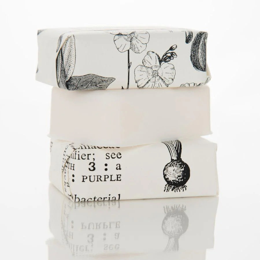 SIZE/DESCRIPTION: 6+oz. Bourbon & Vanilla shea butter bath bar packaged in a signature botanical and vintage illustrations.