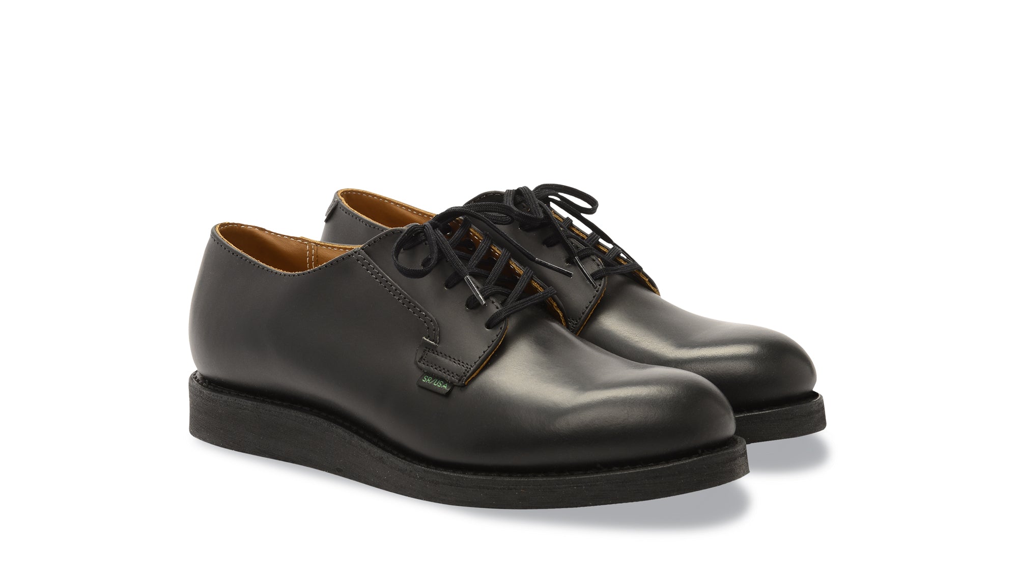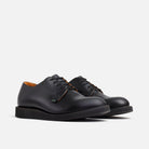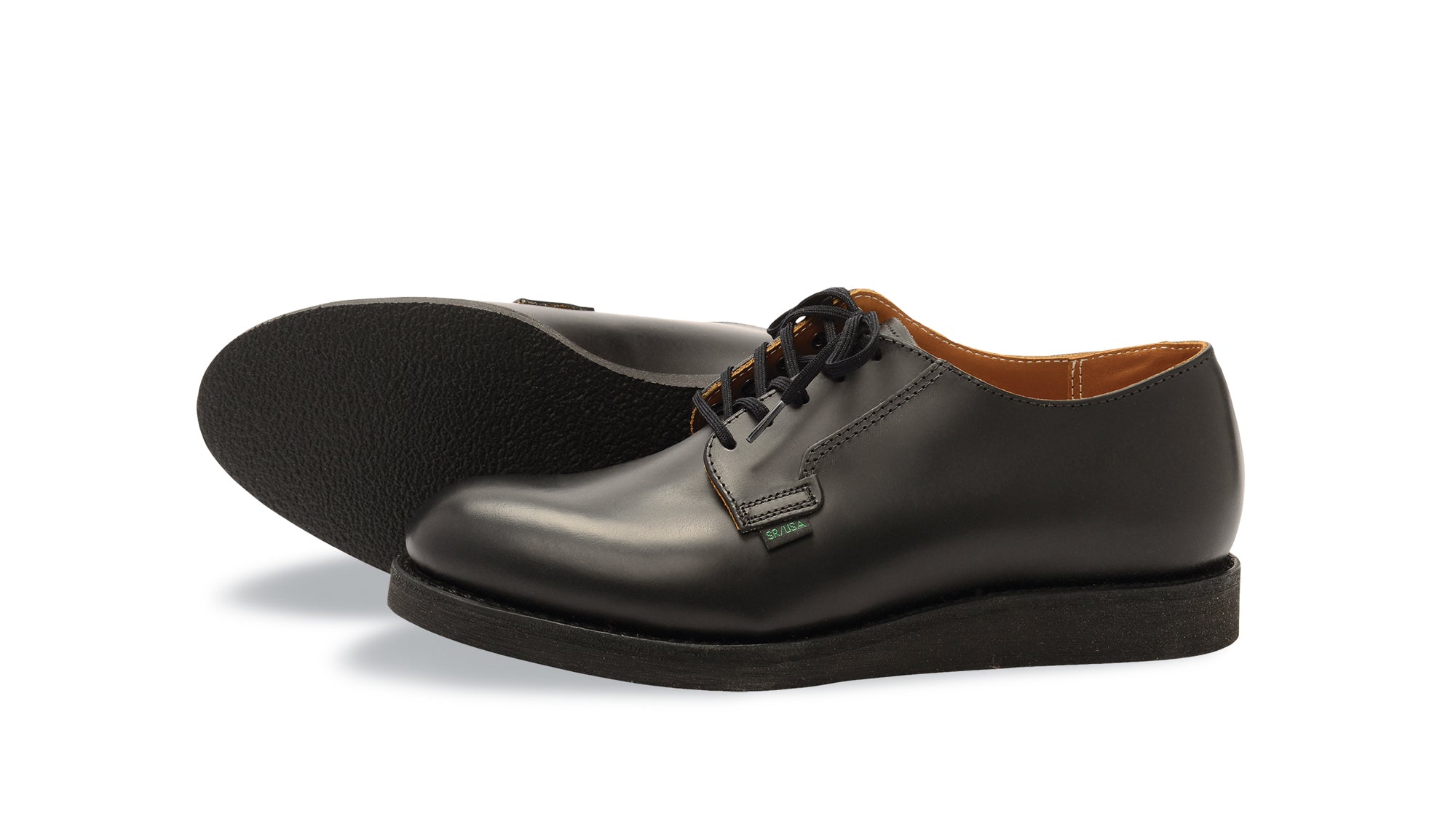 The Red Wing Shoes Postman Oxford 101 Black Chaparral is a classic Red Wing Shoes Postman work shoe and is made in Red Wing, Minnesota. The Red Wing Shoes Postman is the original postman shoe from the 1950s. The Red Wing Postman was originally designed to meet Postal Service requirements. The Red Wing Postman is sturdy, sleek and simplistic to serve America’s mailmen well. This 101 Red Wing Postman was first introduced in 1954 and have a leather upper, a dog tail and blind eyelets. The Red Wing Postman has a black cushion crepe wedge outsole which gives the shoe maximum comfort during long walks. The Red Wing Shoes 101 style is made of Red Wing Black Chapparel leather. The Red Wing 101 Black Chapparel comes with black laces.