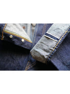 A model designed based on an analysis of jeans from the early 1950s. The denim, woven on vintage shuttle looms using yarn spun on a 1953 machine, develops a natural, uneven fade similar to that of 1950s jeans. For stitching, cotton thread is used, which blends well with the cotton fabric and undergoes aging over time, just like the material. Produced using manufacturing methods faithful to the 1950s, the side seams twist toward the right with wear. This is not a defect but a deliberate reproduction of the characteristics of jeans from that era. The silhouette will be slightly wider compared to our classic 105 STANDARD SELVEDGE DENIM.