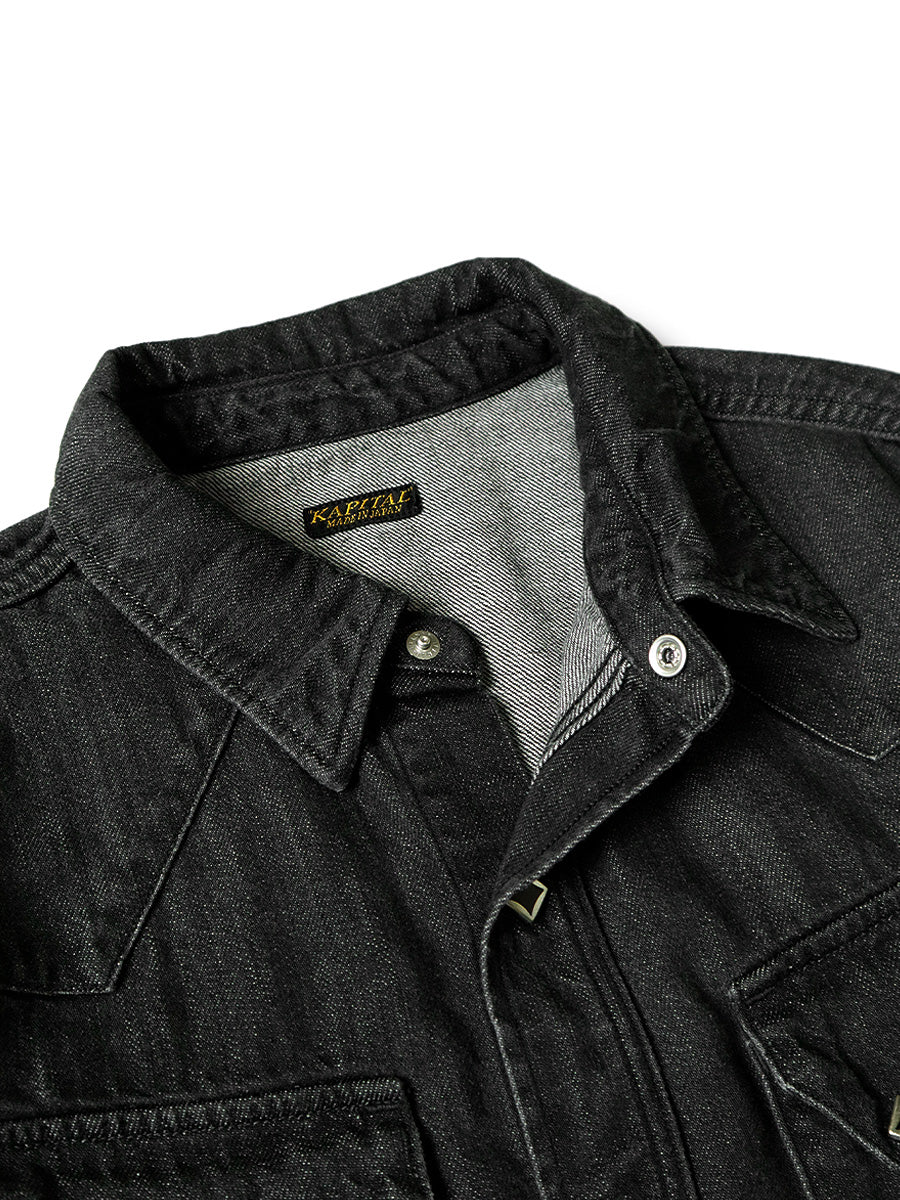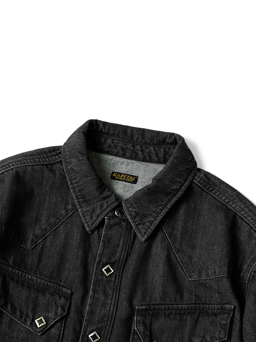 Kapital 8oz black denim lace up western shirt - Black