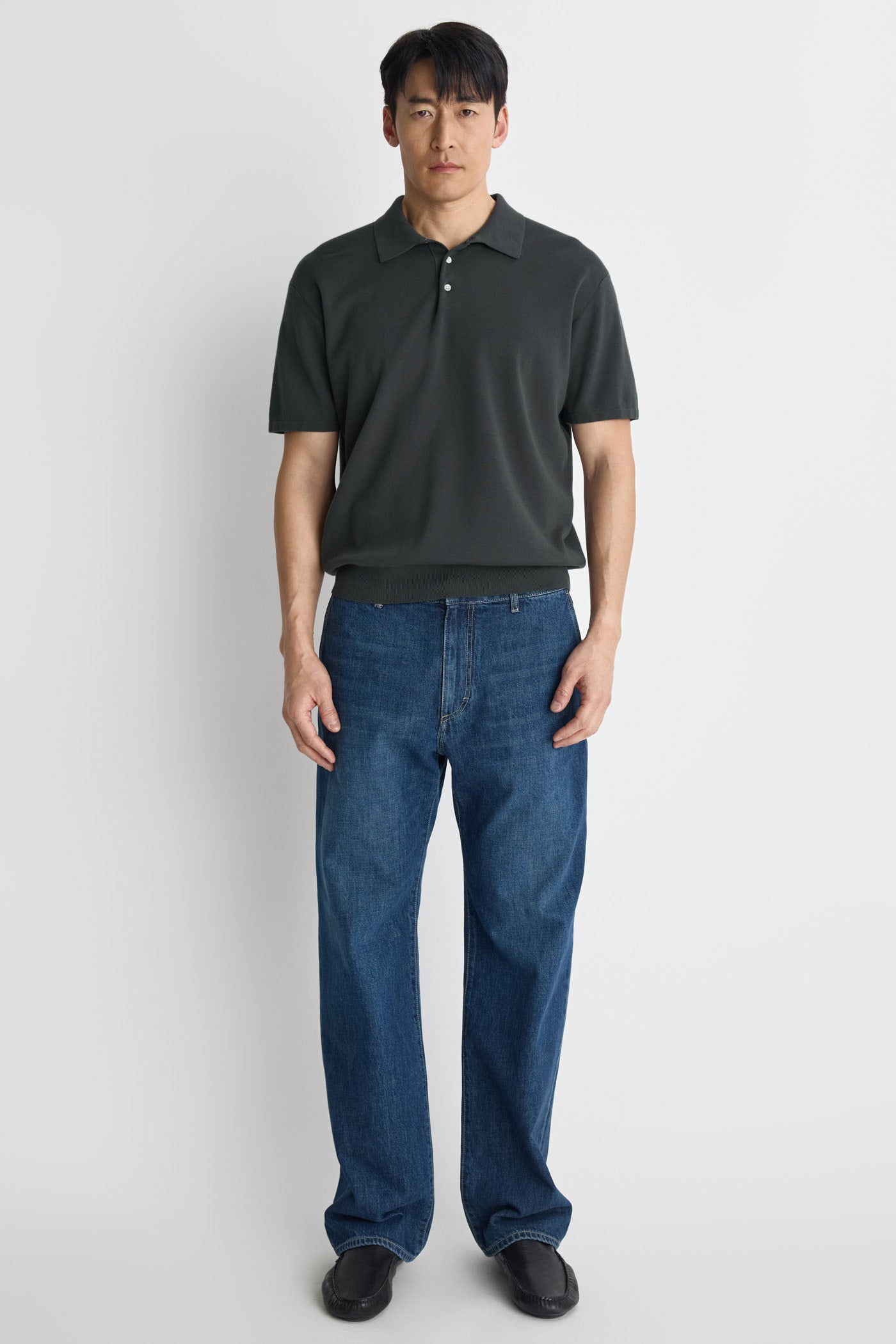 Linen-like polo knit with a soft design and comfortable fit