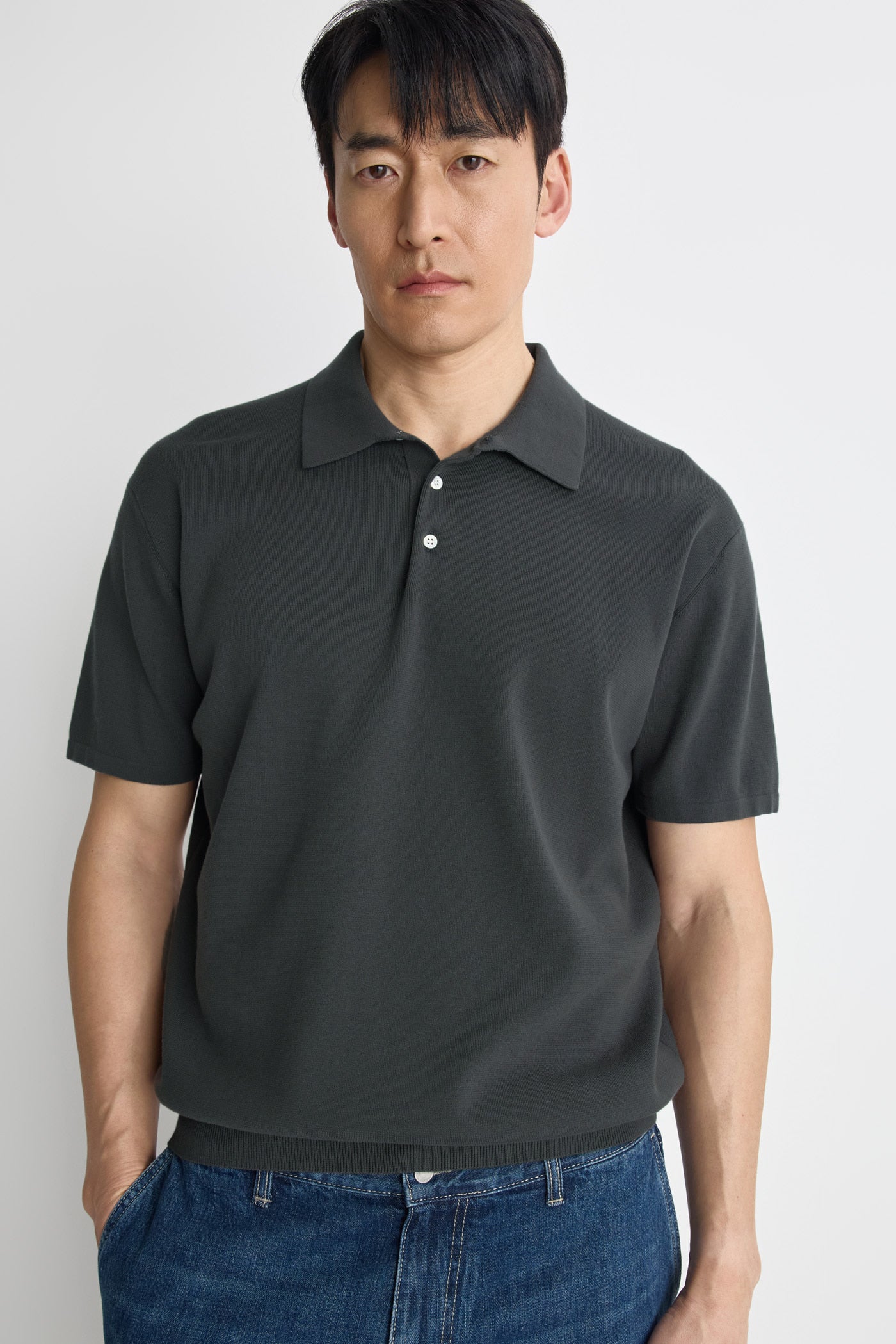 Pottery Short Sleeve Comfort Polo Knit - Charcoal