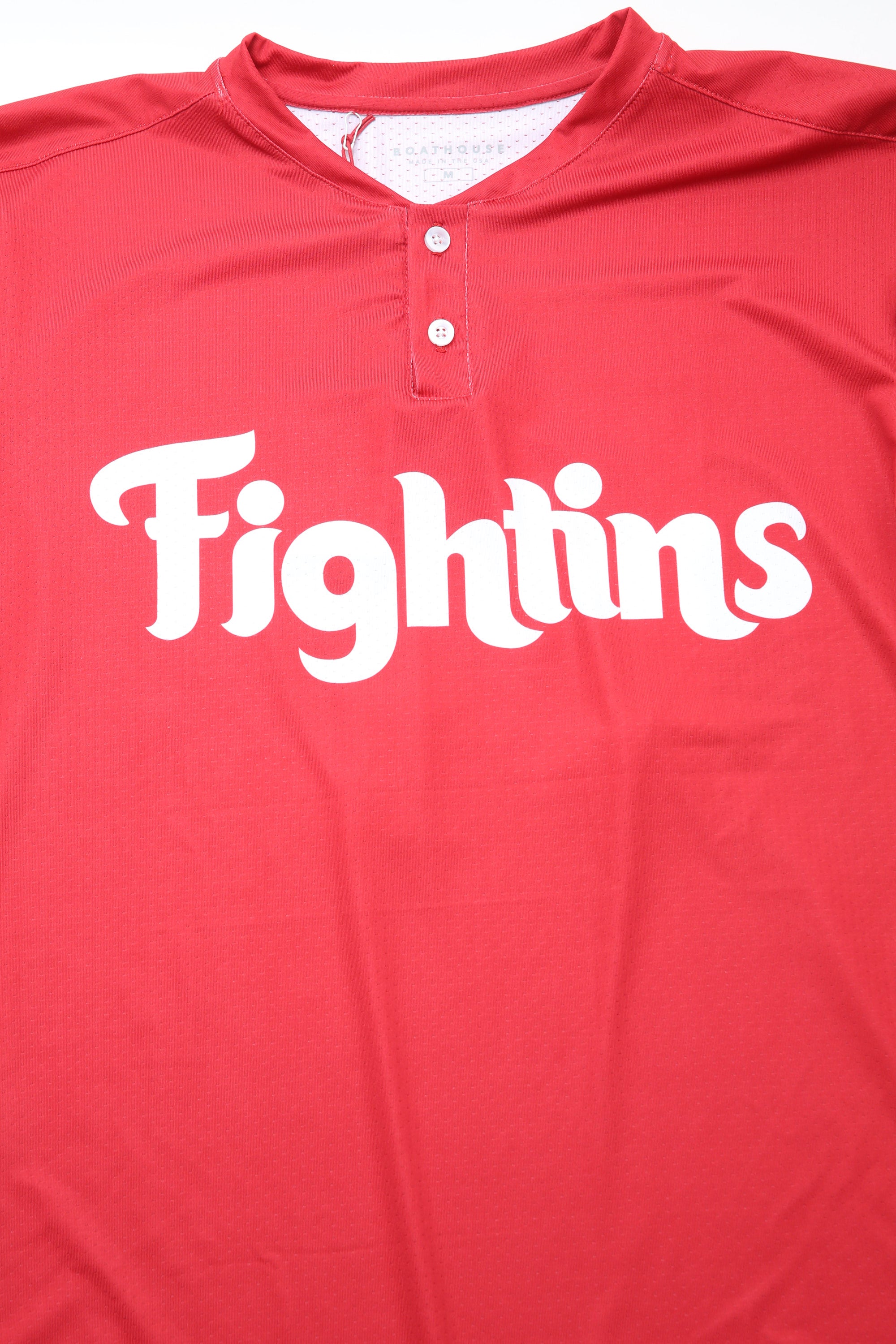 Step up your game day fashion with our FIGHTINS Henley Mesh Jersey! Made in Philly, this breezy yet strong jersey is just right for the season. In a bright red shade, it'll make you stand out in the crowd while its breathable mesh material keeps you feeling cool and comfy. Flaunt your team and city pride with this essential top.