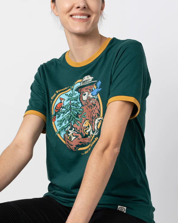 Celebrate Smokey Bear’s message with this fun ringer tee that reminds us the forest is full of life beyond just trees. Slip it on to honor all the forest’s friends while supporting wildfire prevention—10% of sales go to education efforts. Crafted by The Landmark Project under US Forest Service license, this tee features unisex sizing and a comfy fit, made from 60% sustainable cotton and 40% recycled polyester. Perfect for those who love nature and want to make a difference!