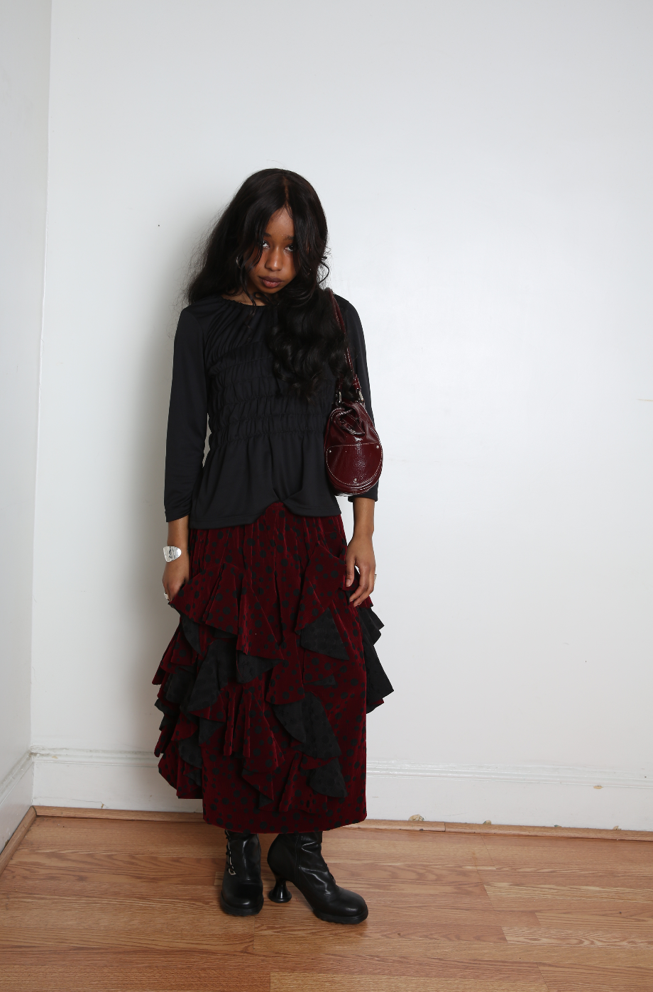 Comme des Garçons Comme des Garçons (CDGCDG) Ladies' Skirt - Black X Burgundy