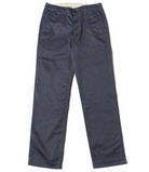 Warehouse & Co. Lot 1082 West Point Chinos have been inspired by M-41 chinos issued to the US Military in the 1940s. These straight-leg Chinos are made from a Japanese Selvedge West Point Twill fabric that has been sulfur dyed. The beautiful olive color has a glossy, deep tone that will age beautifully with every wash and wear.