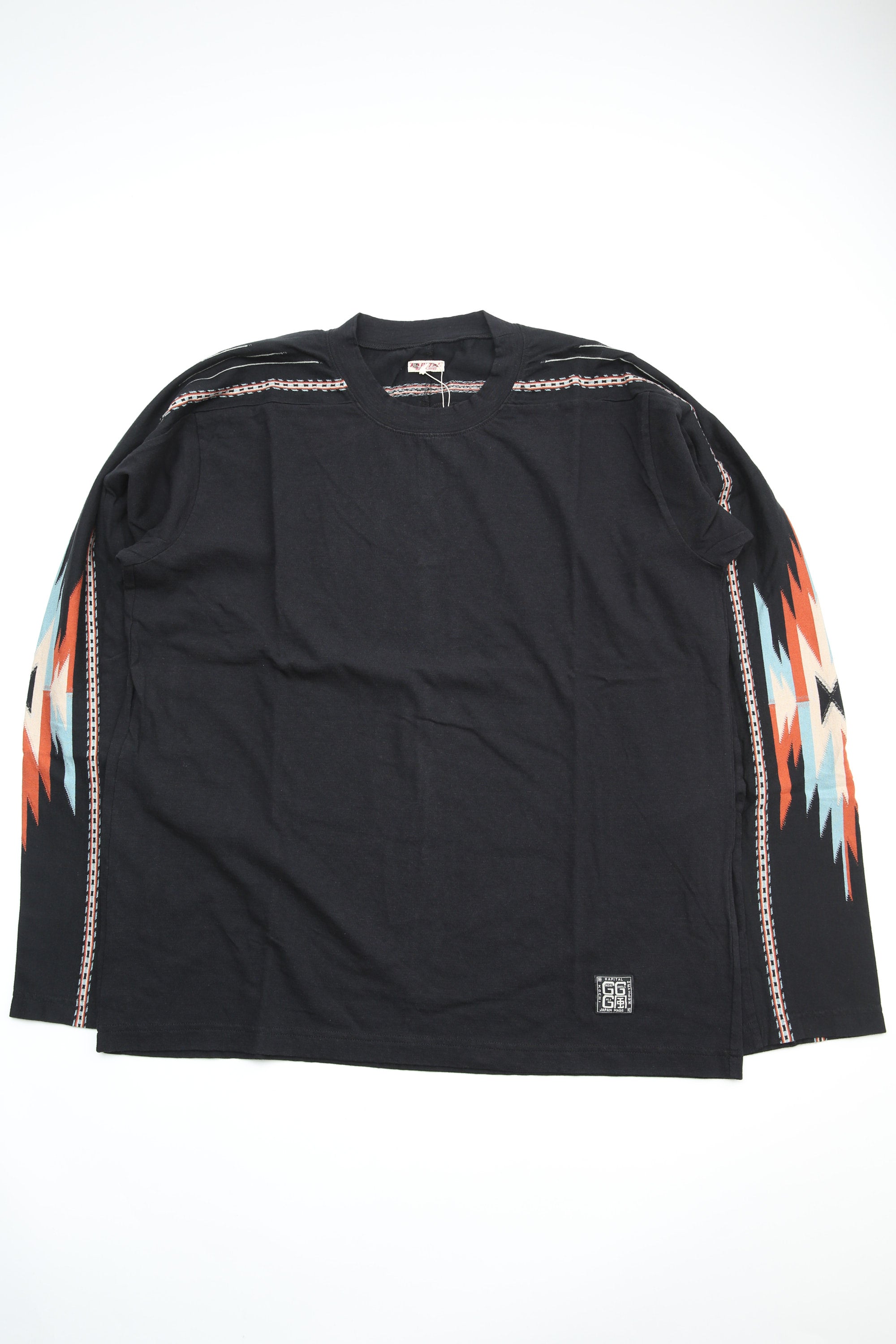 Get ready to score some serious style points with the Kapital Ortega Jersey Football L/S Tee! This black tee features a unique chimayo design, adding a touch of quirkiness and personality to your wardrobe. Stay cool and comfortable while looking effortlessly cool in this playful and versatile tee.