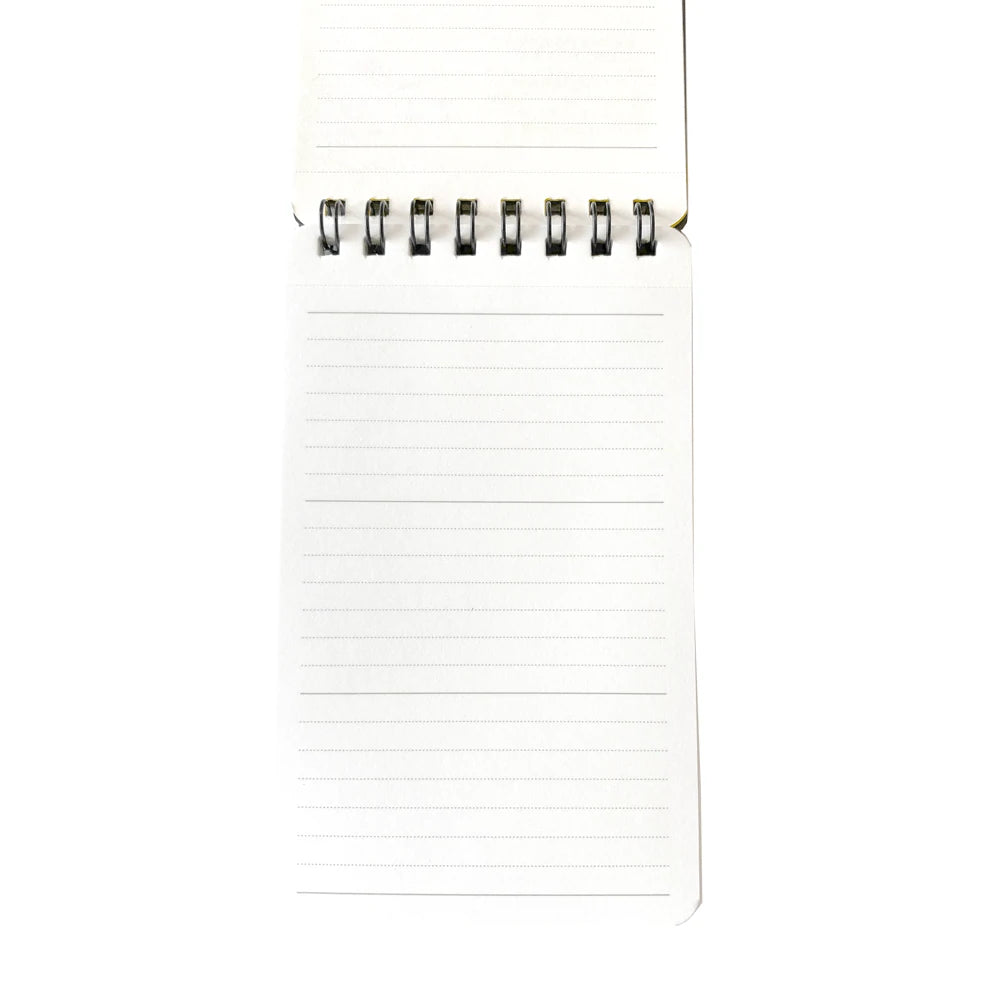 The Maruman Mnemosyne notepad is a small, pocket-sized version of the popular Mnemosyne line. The notepad has sturdy yet flexible plastic covers, printed with minimal text in gold and white. These plastic covers can protect your notes against water, and can fend off a few light splashes in the kitchen or a rainy commute. Writing on the front and back of every sheet is easy because the twin ring binding keeps your notepad laying flat. Each page is micro perforated for clean removal, and lined on both sides with gray 5 mm rule. Every seventh line is bold, dividing each page into four sections—this sectioning helps you organize or categorize your notes. Rounded corners also keep the pad from catching as you slip it into your pocket or bag.
