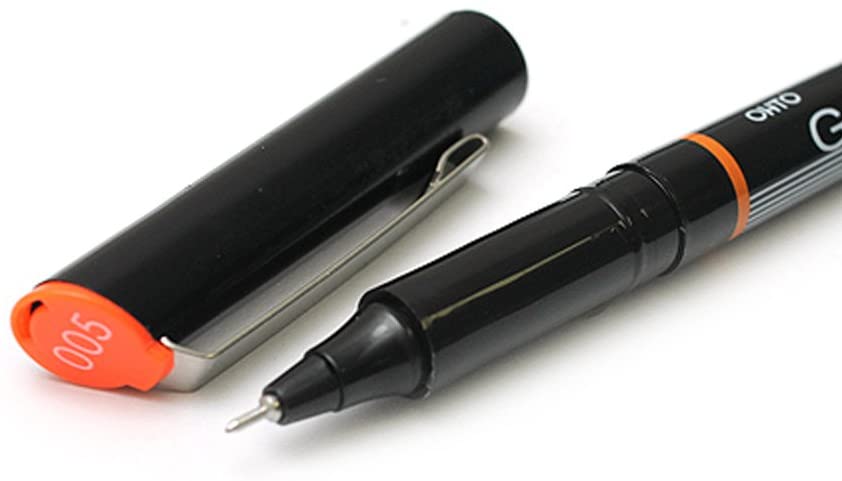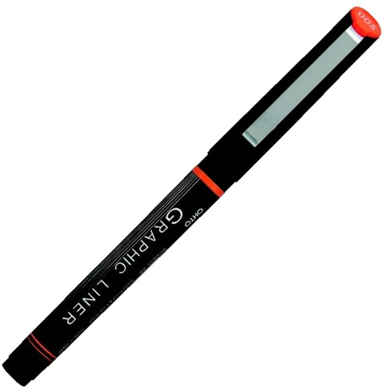 Ohto Graphic Liner Needle Point rollerball drawing pens produce the same fine and consistent lines as fiber-tipped drawing pens but with a sturdy metal rollerball tip instead! This means that you'll be able to use every last drop of the waterproof, archival-safe pigment ink without having to worry out about wearing out the pen tip over time.