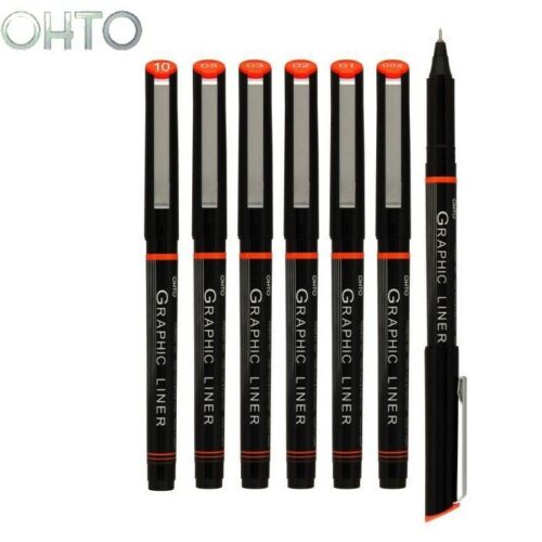OHTO Graphic Liner Needle Point Rollerball Drawing Pen - Pigment Ink - Set of 6
