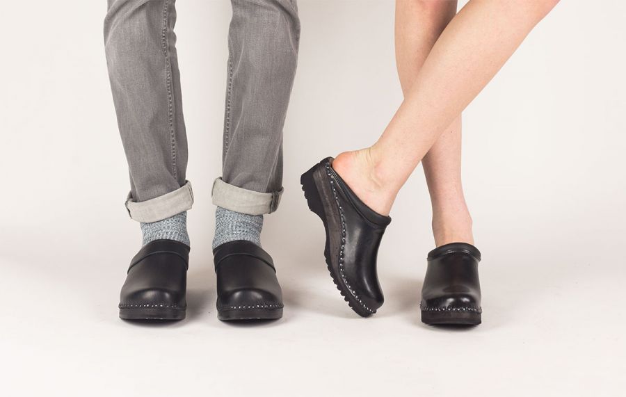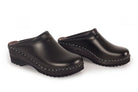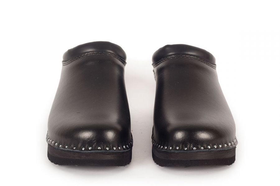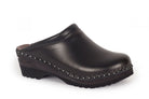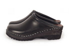 Classic Swedish clog style in black leather designed in 1983. Made on Troentorp's Ideal wooden base.